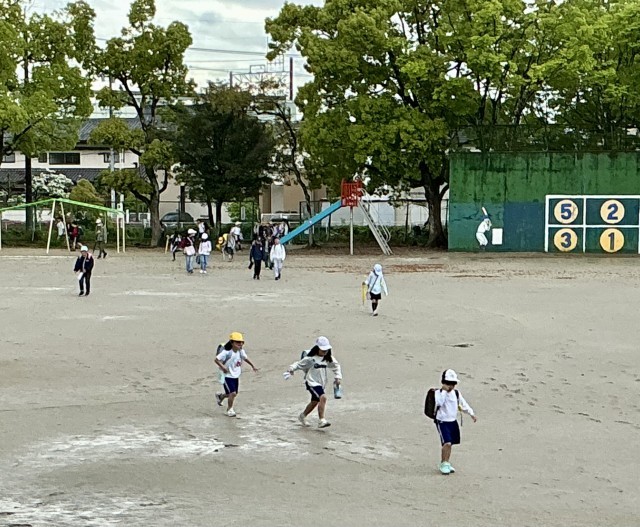 4時間授業特別日課、給食ありの一斉下校です。