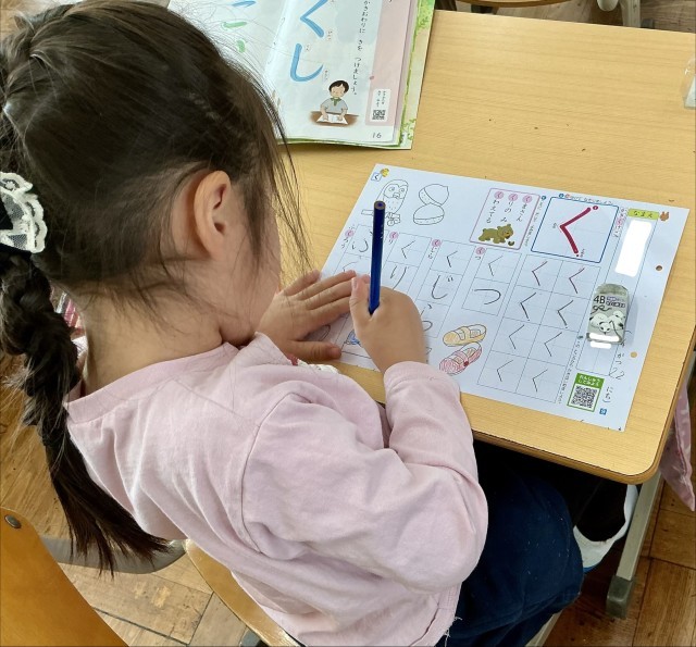 鉛筆の持ち方や書くときの姿勢など、細かい点まで丁寧に指導しています。