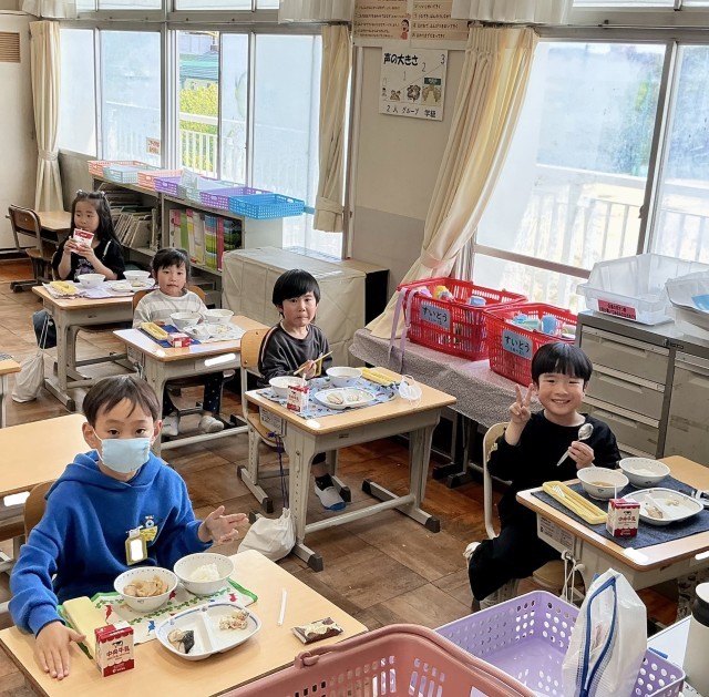 4月27日(月)1年生の給食風景5 公開日 2026/04/27 更新日 2026/04/27 各学年から 先生のお話をしっかりと聞き、給食を楽しむ1年生のみなさんでした♪♪すばらしいです! 1年 2年 3年 4年 5年 6年 特別支援学級