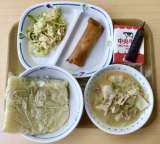 今日のメニューは栄養満点です!つみれ汁とおひたしで野菜がいっぱい。おいしくいただ...