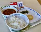 今日のメニューは栄養満点です!つみれ汁とおひたしで野菜がいっぱい。おいしくいただ...