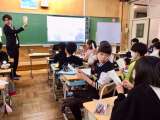 羊毛ストラップづくり、タブレット画像を使っての学校紹介、オリジナルのプレゼントま...
