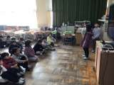 こちらも入学説明会の準備をしていました。前半は行事の紹介で、後半は一緒に折り紙を...