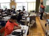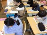 他の学年の書き初めを見学していました。丁寧に書けている作品を見て、これからの参考...