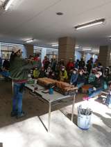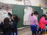 算数科の授業では、1平方メートルについて調べました。新聞紙を使って、黒板やロッ...