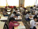 書き初め用の名前を練習しました。2年生は、苗字を漢字、名前をひらがなで書いていま...