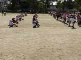 各クラスごとに分かれて、位置を確認していました。踊りを覚えて、頑張っていることが...