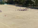 運動場で広がって踊りの練習をしていました。元気いっぱいです。