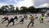 みんなの心を一つに、勝利をつかもう! 雨が降るとすぐに運動場がぬかるんでしまい...