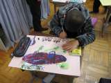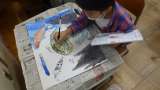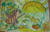 『とべバッタ』という絵本を読み,読書感想画を描きました。鳥やヘビ,カマキリ,ク...