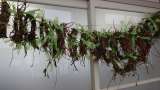 生活科の授業でアサガオのつるを巻いてクリスマスリースを作ります。はじめにアサガオ...