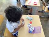 計算カードで問題を解いていました。こんなに解けるようになったよ、と教えてくれた子...