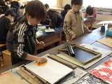 印刷していました。初めて彫刻刀で彫った作品が仕上がりました。