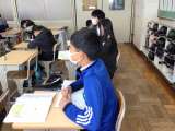 単語のテスト50問に取り組んでいました。終わった後は、キーン先生にスピーチの練習...