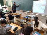 人口や交通の移り変わりについて、資料を読み取っていました。タブレットでグループワ...