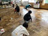 教室の大掃除を頑張っていました。たくさん埃が取れたと見せてくれた子もいました。