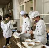 2月28日(金)の梅坪小(4)3年生の給食風景
