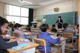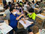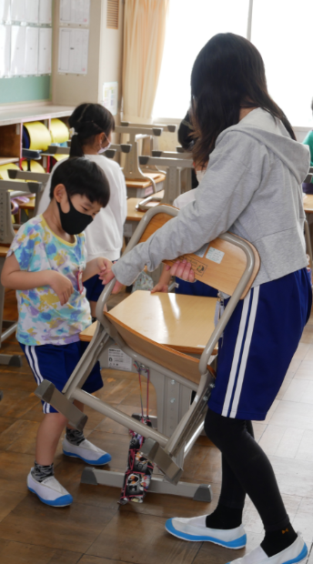 1年生が上手に掃除ができるように、6年生がお手伝いをしています。 重たい机を一緒...