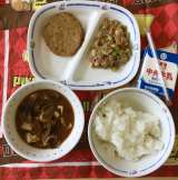 今日のメニューは、大豆のピリからいために、じゃがいものみそ汁。 お豆腐は豊田産だ...