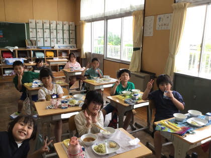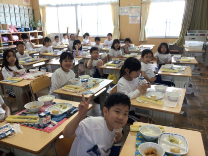 4月30日の梅坪小学校(10)3年生の会食風景