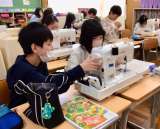 4月28日(月)の梅坪小(17)6年生 家庭科 ミシンの操作
