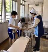 4月30日(水)の梅坪小(6)4年生の給食風景