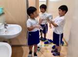ストローの補充をしてきた2年生に、雑巾を洗って絞る1年生。 梅小は 低学年もたの...