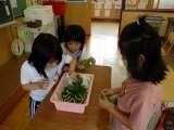 生活科の学習で育てているアサガオが大きくなりました。小さなつぼみを付けているも...