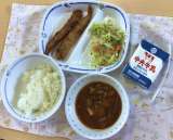 6月27日(木)の梅坪小(8)1年生の給食風景
