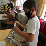 図画工作科の学習で、しんぶんしくんと一緒に新聞紙を使って授業を進めています。新...
