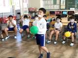学級レクをして、盛り上がっていました。風船を使った爆弾ゲームをしていました。