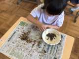 自分で材料を持ってきて、手作りおもちゃを作りました。