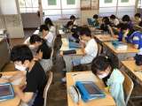 ローマ字入力の仕方を教えていただきました。キーボードを使い、楽しく覚えていました...