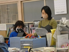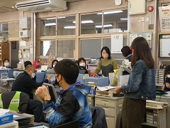 春休みの勤務を利用して、畝部小学校の教職員がアレルギーについての研修会を行いました。養護教諭の先生を中心に学習し、エピペンの打ち方についての実習を行いました。