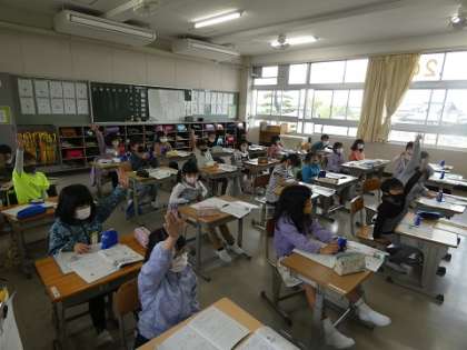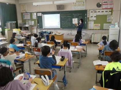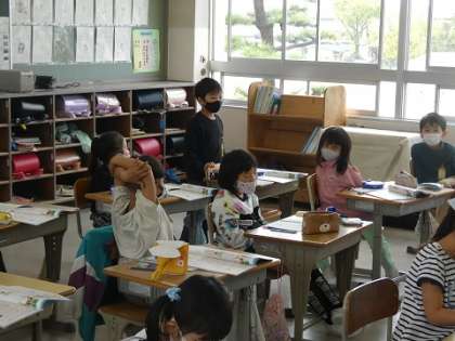 2年生は、時計を使って、時刻や時間の勉強をしています。挙手がたくさんあって素晴らしいですね。