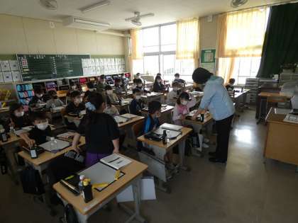 3年生は、今日の書写の時間が初めての毛筆習字の時間でした。