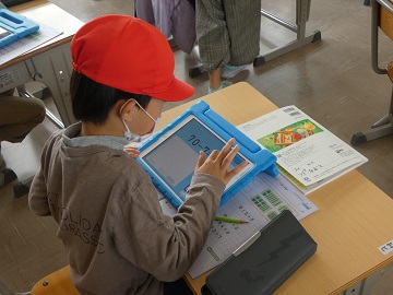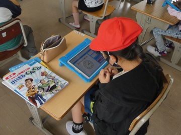 時間と時刻の問題を学習用タブレット(ipad)で繰り返し勉強していました。