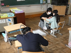 校庭に咲いている美しい花をipadで撮影して、その映像を学習用タブレット(ipad)から大型テレビに映し出