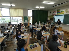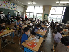 4年生は、国語と社会の授業をしました。先生の質問に対して、子どもたちは、テンポよく元気に答えていました。