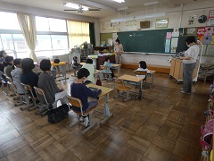 5組と6組は、生活科の授業をしました。少し恥ずかしがってしまったけれど、落ち着いた雰囲気で勉強することが出来ました。