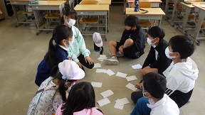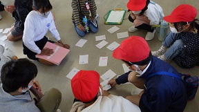 名前の書いてあるカードで神経衰弱をしました。ファミリー班の子たちの名前は覚わったかな。