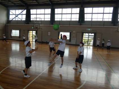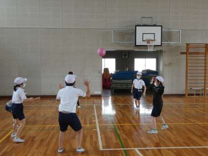 バレーボールの練習をしていました。写真からも一生懸命に練習する子どもたちのやる気が感じられます。