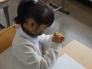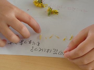 たんぽぽの花弁(小さな花)がいくつあるかみんなで数えました。いくつあったのかな。