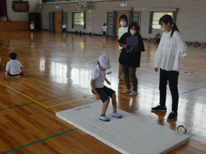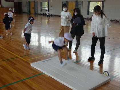 今日の体力テストは、幅跳びを行いました。初めての幅跳びですが頑張りました。