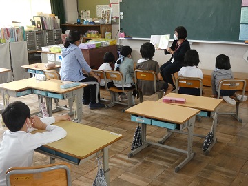 司書さんが読み聞かせをしてくれました。子どもたちは、すごく集中してお話を聞いていました。