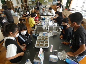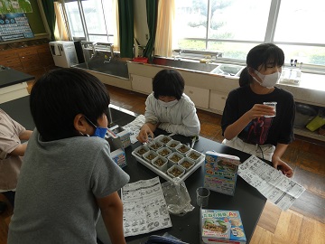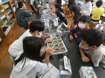 植物の発芽の条件を調べる実験をしていました。子どもたちは、仮説を立てて行う実験や観察が大好きです。