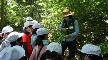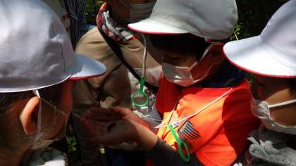 4年生 トヨタの森で自然体験学習 1 公開日 2022/05/24 更新日 2022/05/24 お知らせ トヨタの森で自然体験活動をしました。インタープリターさんが、トヨタの森のいろいろなことに気づかせてくれます。見せてくれた蜘蛛は苦手な子もいたようです。ヤゴを捕まえた子もいたようですね。