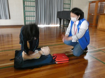 5年生と6年生は、消防署の方を講師にお招きして、応急手当研修を行いました。実際に心肺蘇生法を行うとスピードが速すぎたり、弱すぎたり、強すぎたりと上手くいかないこともありました。実際にやってみて分かることもたくさんあります。