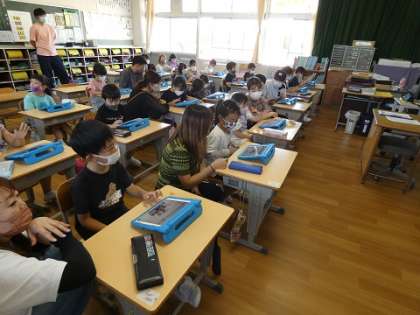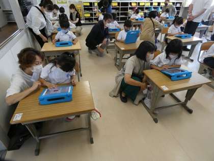 6月8日 授業参観 1年生 公開日 2022/06/08 更新日 2022/06/08 お知らせ 分散型授業参観にご協力ありがとうございました。子どもたちのがんばっているところを見ていただけたでしょうか。ご家庭でもたくさんほめていただければと思います。 しばらく、授業参観はありませんが、今後も学年通信や学校ホームページなどで情報発信していきますので、お子様との会話の材料にしていただければと思います。 1年生は、ipadのスカイメニューの使い方を練習しました。