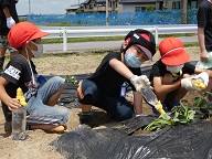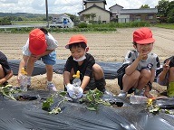 6月9日 1年生 サツマイモの苗植え 1 公開日 2022/06/09 更新日 2022/06/09 お知らせ 1年生は、地域の方にお借りした畑にサツマイモの苗を植えました。強い日差しの中、「ちゃんと育ちますように」と心を込めて、植えた苗にペットボトルの水をかけました。